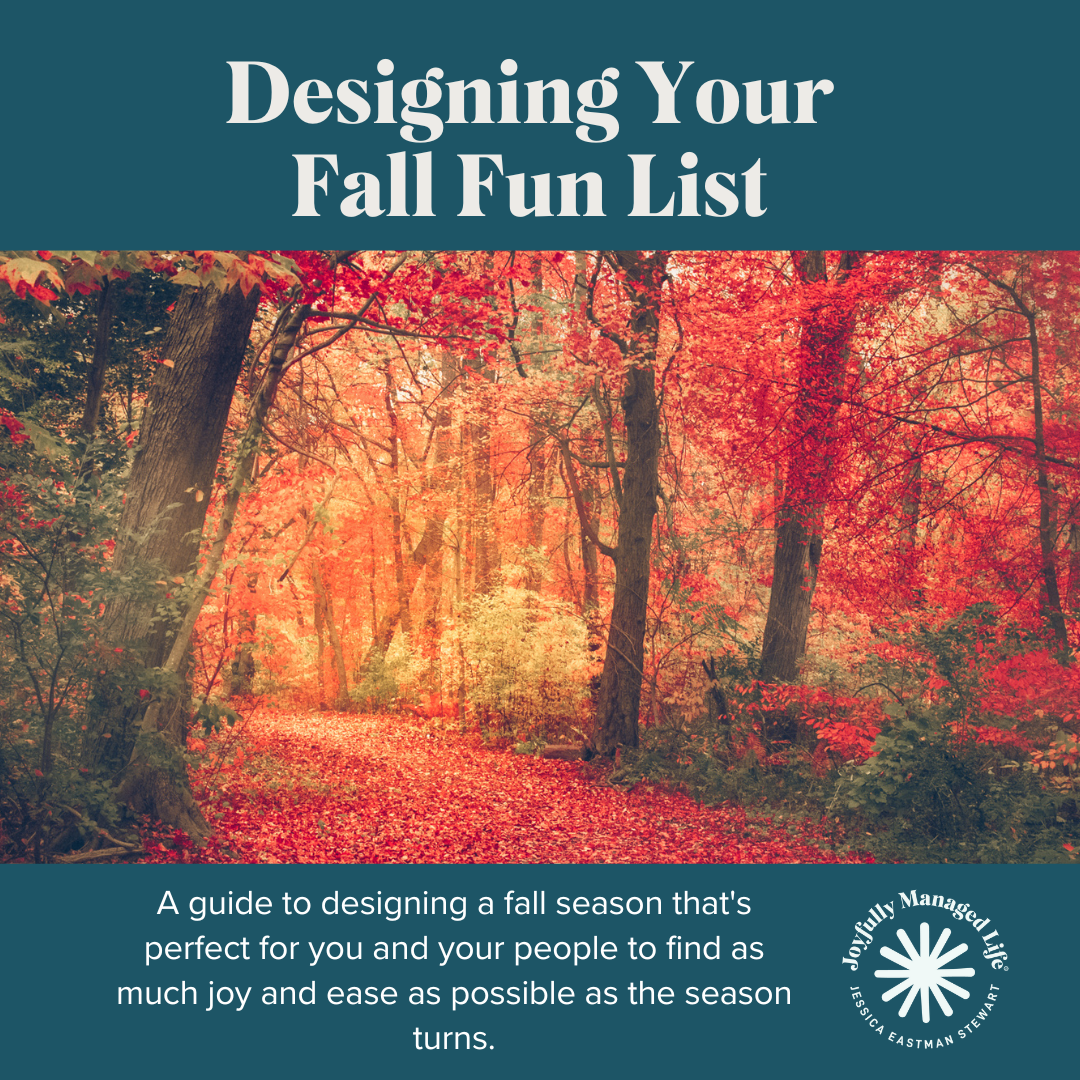 This 20-page guide will help you design the fall fun of your dreams in half an hour. It will take you through a simple process to decide what is important to you during this season and what is not, give you ideas for fun activities you might want to do, help you avoid common pitfalls to seasonal fun lists, and is jammed-packed with bonus printables for your fall fun list, to decorate your home for the season, and to even help you be more productive at work and home.